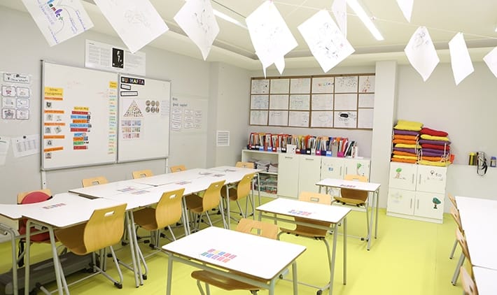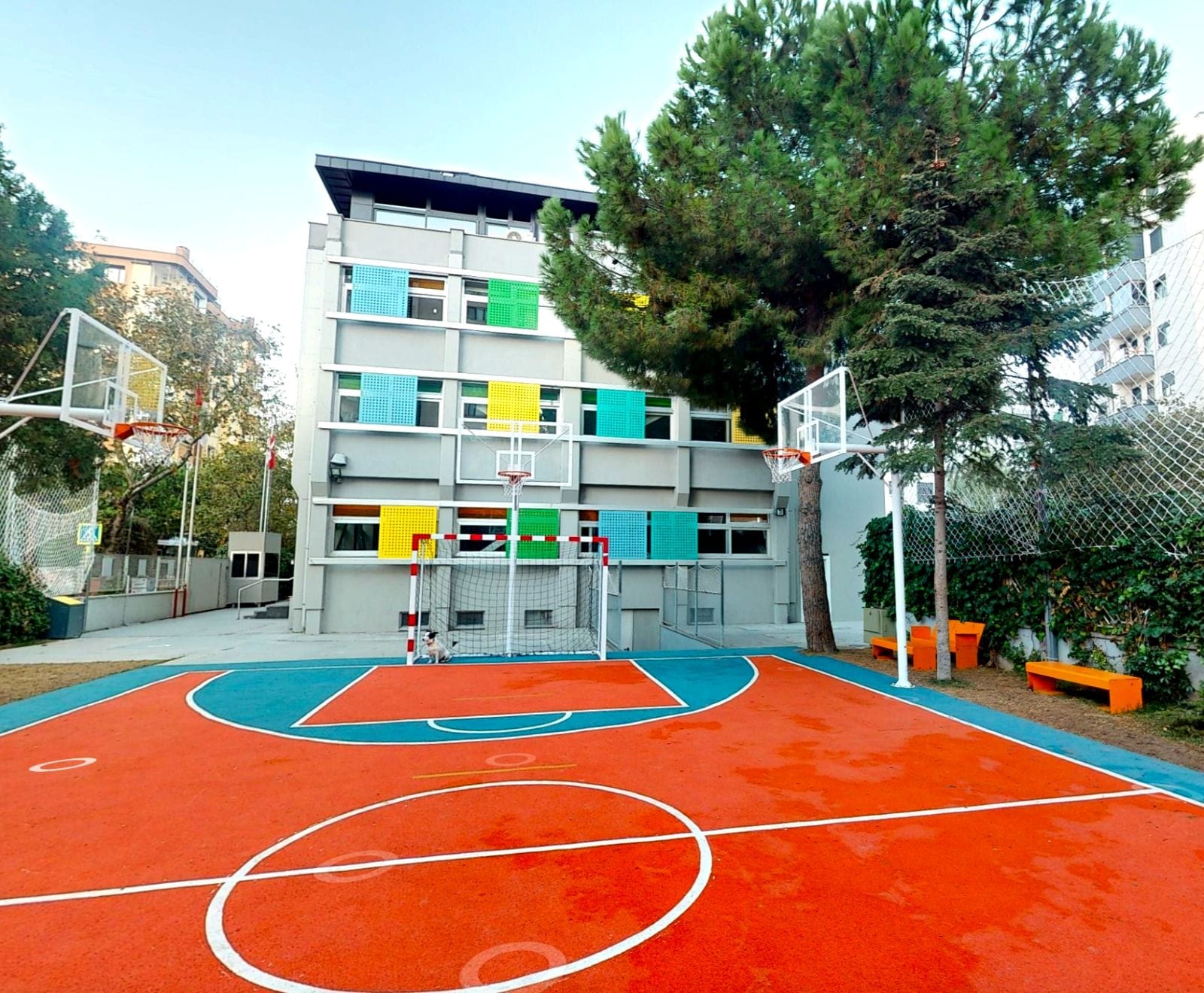 Toplamda 12 derslikten oluşan kampüs; kapalı spor salonu, açık spor sahaları, oyun alanları ve atölyelerden oluşuyor.